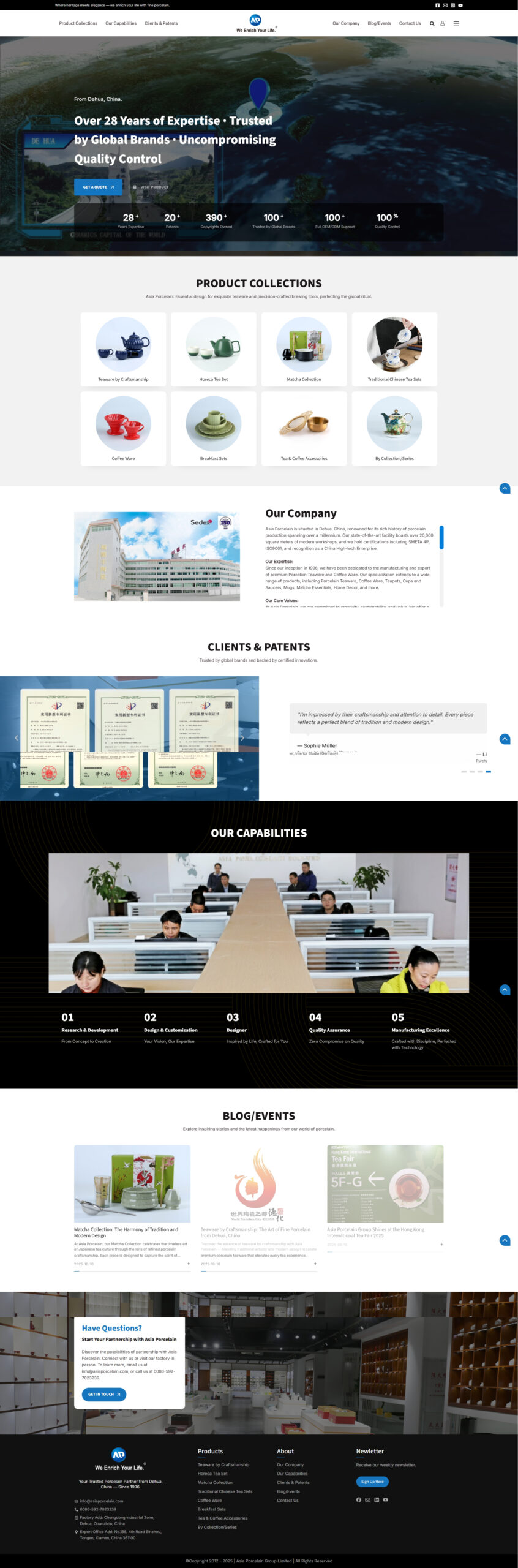 Asia Porcelain is situated in Dehua, China, renowned for its rich history of porcelain production spanning over a millennium. Our state-of-the-art facility boasts over 20,000 square meters of modern workshops, and we hold certifications including SMETA 4P, ISO9001, and recognition as a China High-tech Enterprise.