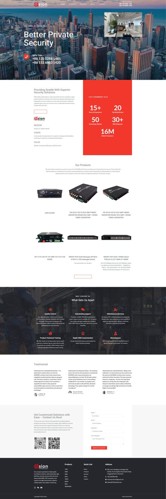 对 Avision 而言,这个官网显著提升了其在国际买家眼中作为“可靠供应商 / OEM/ODM 制造商 / 安防设备专家”的专业度与信任度,有助于扩大海外订单、吸引更多批发商与合作方,推动产品出口与市场扩展 —— 将网站打造为“展示 + 营销 + 合作对接”三合一的重要工具。