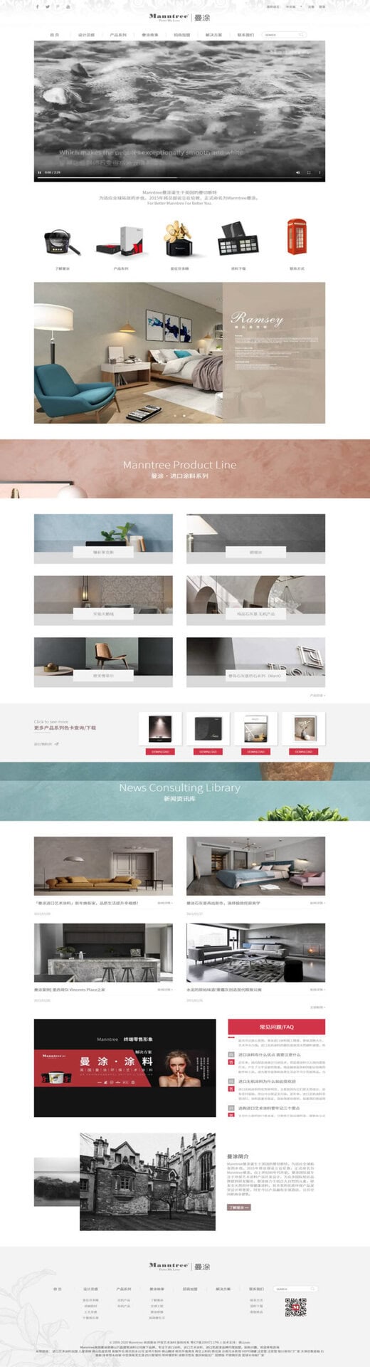 Manntree 是一家专注高端环保艺术涂料的品牌,产品广泛应用于住宅家装、商业空间和建筑装饰领域,涵盖无机涂料、有机涂料、艺术涂装以及多系列色彩设计方案。客户期望通过新版官网全面提升品牌专业度与艺术气质,使网站既能吸引终端消费者,也能为设计师、施工方及渠道经销商提供完整的产品信息和应用参考,实现品牌形象与商业转化的双向提升。