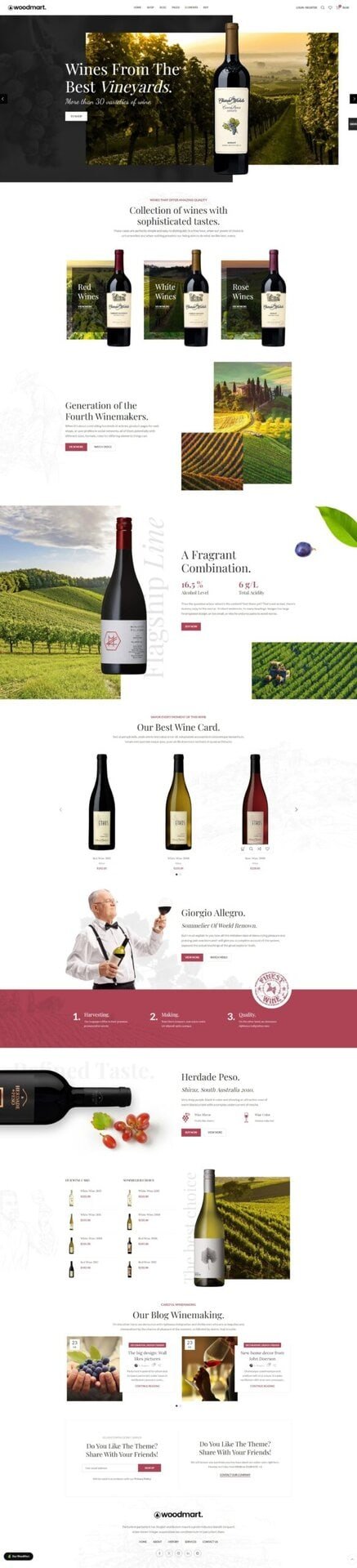 Woodmart主题是一款专为商城建站设计的WordPress主题,提供丰富的功能和定制选项,适合展示葡萄酒产品。