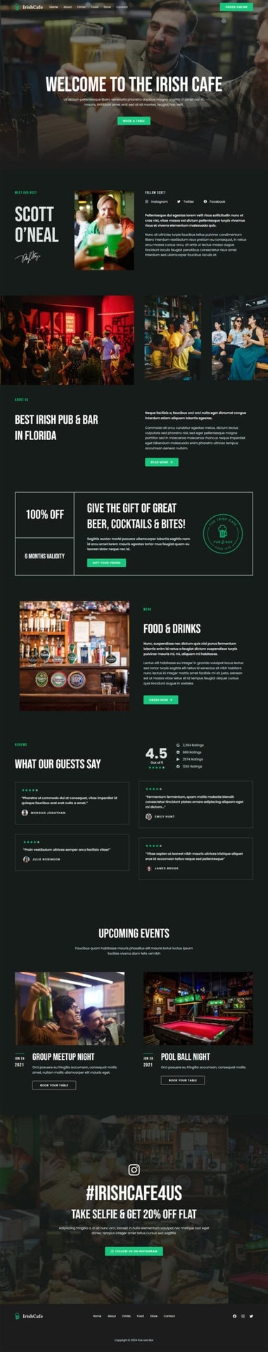 您可以在网站上添加社交媒体按钮,展示最新的社交媒体帖子或评论,并鼓励客户通过社交媒体与您的酒吧互动,增加曝光度。