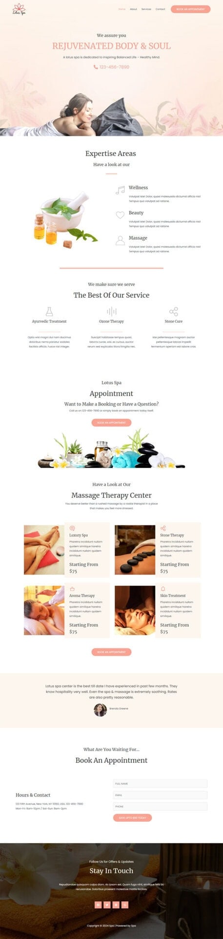 - 定制灵活性: Astra主题提供了丰富的定制选项,可以轻松调整颜色、字体、布局等,使网站符合水疗中心的品牌风格。
