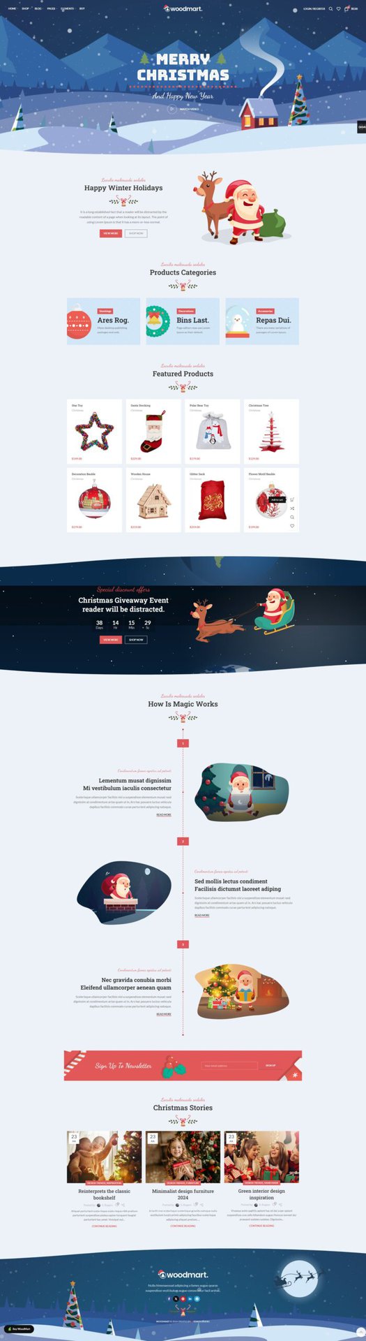 通过这些功能和策略,您可以在圣诞季节有效地展示和推广产品,吸引客户的注意并增加销售额。WoodMart主题为您提供了丰富的工具,让您的在线商城充满节日气氛,为客户创造愉快的购物体验。