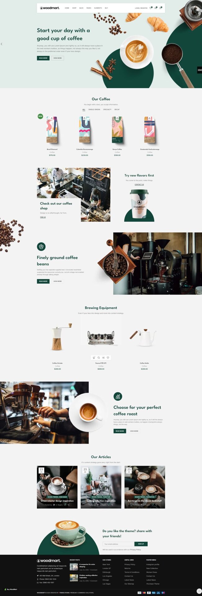 - 丰富的主题设置: Woodmart提供了丰富的主题设置选项,让您可以轻松自定义颜色、字体、排版等各个方面,打造独一无二的咖啡店网站。