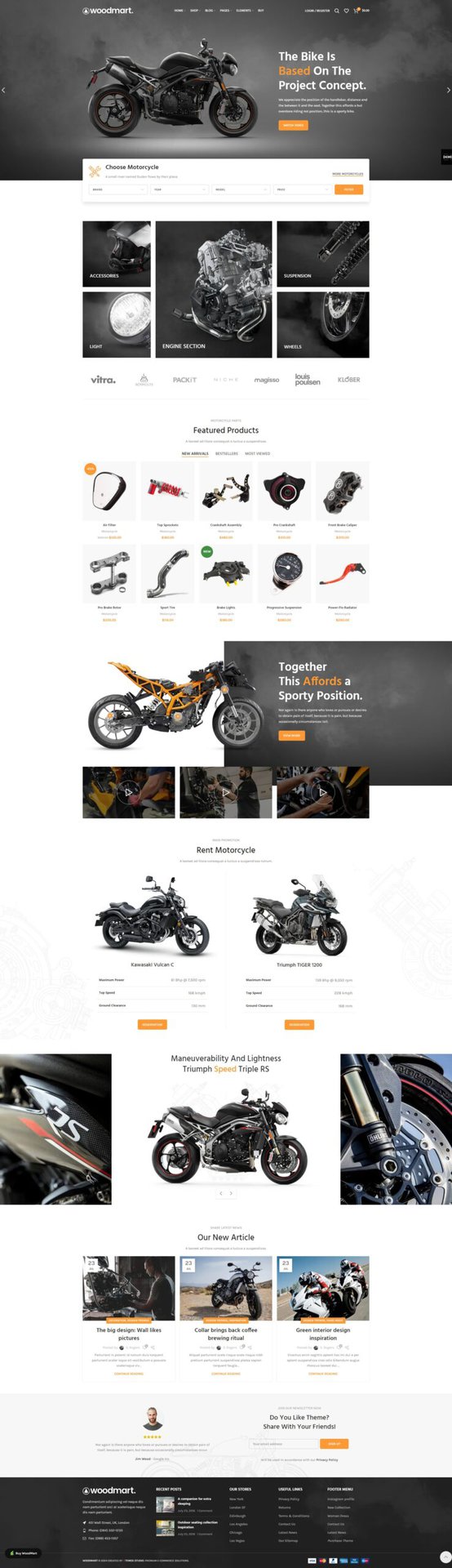 此外,WoodMart主题还提供了灵活的产品管理和分类功能。您可以轻松添加、编辑和管理摩托车产品,设置不同的产品分类和标签,帮助客户更轻松地浏览和购买他们感兴趣的商品。