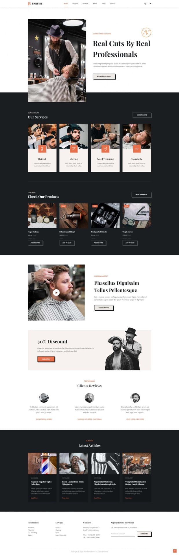 清新无处不在,无论是在您的脸上还是在您的下一个网站上。如果您希望通过在线商店为您的客户提供专业的理发服务以及免费的护发产品,那么理发店就是完美的布局。